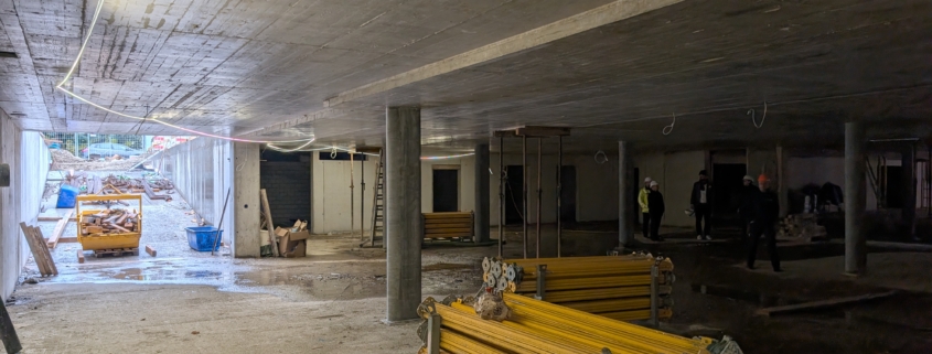 Am vergangenen Donnerstag (30.10.2025) fand eine offizielle Begehung des Rohbaus durch Vertreter der Nutzerschaft (Polizei, Zivilschutz und Feuerwehr) statt. Der Rohbau im Untergeschoss ist nahezu fertiggestellt und im Erdgeschoss erheben sich bereits die ersten betonierten Wände. Die beeindruckenden Dimensionen des Bauvorhabens sind bereits deutlich erkennbar und der zügige Fortschritt der Arbeiten ist sehr erfreulich.