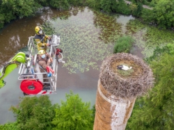 Am Mittwochvormittag (12. Juni 2020) wurde auf dem Schönaukamin ein Jungstorch beringt.