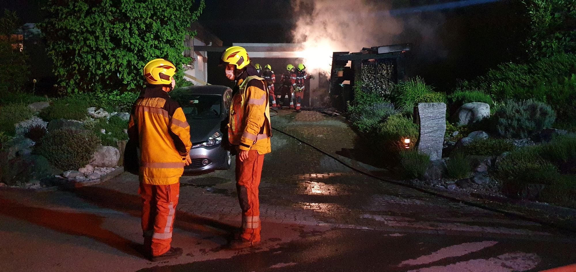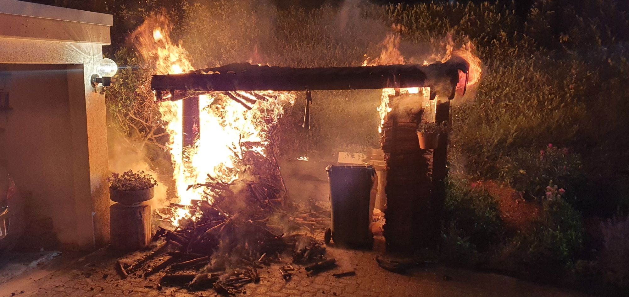 Am Freitag gegen halb drei Uhr in der Früh wurde die Feuerwehr Wetzikon-Seegräben wegen einem Brand im Rigiblick alarmiert. Vor Ort trafen die Einsatzkräfte auf einen brennenden Unterstand. Ein Übergriff auf die benachbarte Garage konnte verhindert werden. Das Feuer konnte rasch gelöscht werden. Verletzt wurde niemand.