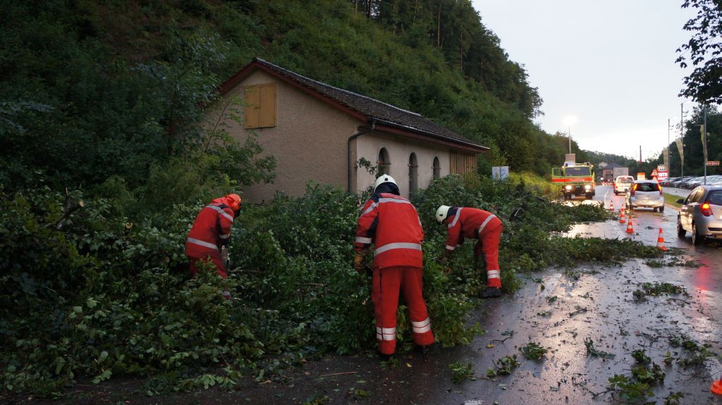Unwetter in Wetzikon und Seegräben. Diverse umgestürzte Bäume mussten von der Feuerwehr Wetzikon-Seegräben weggeräumt werden. Im Aathal musste eine Fahrspur für Aufräumarbeiten gesperrt werden.