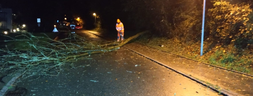 Umgestürzter Baum (Ast ragte Richtung Fahrbahn, keine Intervention notwendig) an der Gstalderstrasse in Seegräben