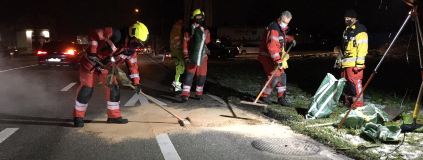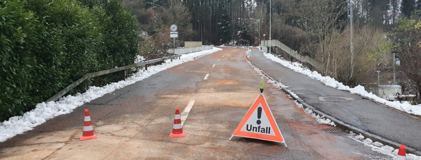 Ölwehr an der Zürichstrasse in Seegräben. Keine Massnahmen notwendige, da es sich um eine alte Spur handelte.