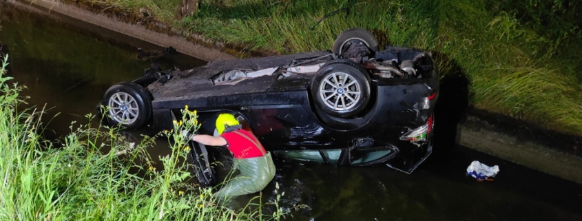 Nach einer Frontalkollision am Sonntagabend (29.05.2022) auf der Zürichstrasse in Wetzikon kamen beide Autos im Aabach zu liegen. Glücklicherweise konnte sich die beiden Fahrer vor unserem Eintreffen selbst aus den Fahrzeugen befreien. Wir errichteten Ölsperren um auslaufende Betriebsstoffe aufzufangen. Weiter unterstützen wir die Bergungs- und Aufräumarbeiten und richteten eine Umleitung ein.