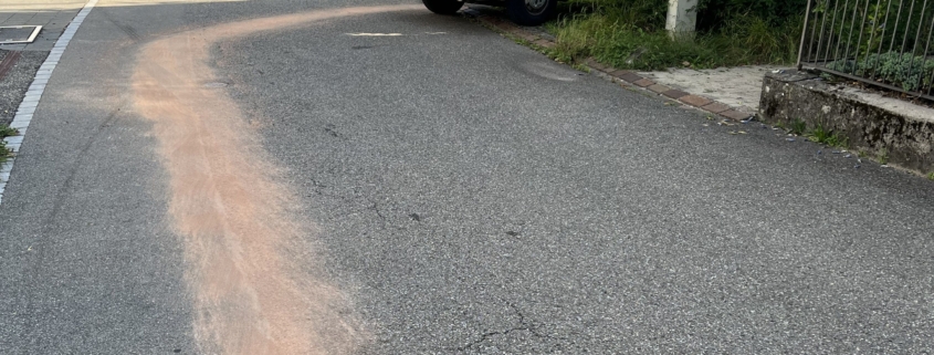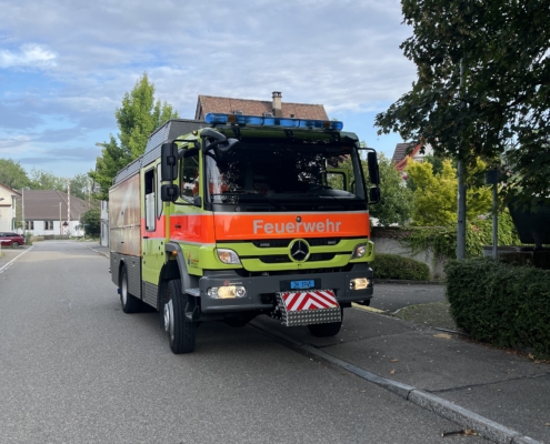 Für einmal gerieten wir selbst in Not. Bei einer Übung mit unserem Hubretterfahrzeug (HRF) ereignete sich im Hydrauliksystem ein Defekt und es traten ca. 10 Liter Öl aus. In der Folge konnte das Fahrzeug nicht mehr bewegt werden. So musste ein Techniker aufgeboten werden, der das Fahrzeug noch in der Nacht vor Ort reparierte. Danach konnte das Fahrzeug wieder bewegt und ins Depot verschoben werden. Im Anschluss musste der verschmutzte Boden mit Ölbinder gerienigt werden. Der HRF ist inzwischen wieder einsatzbereit.