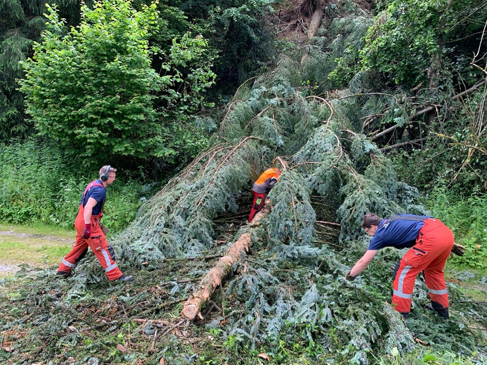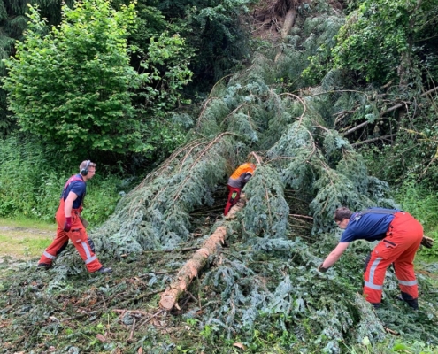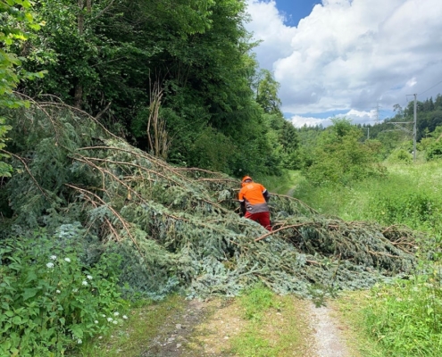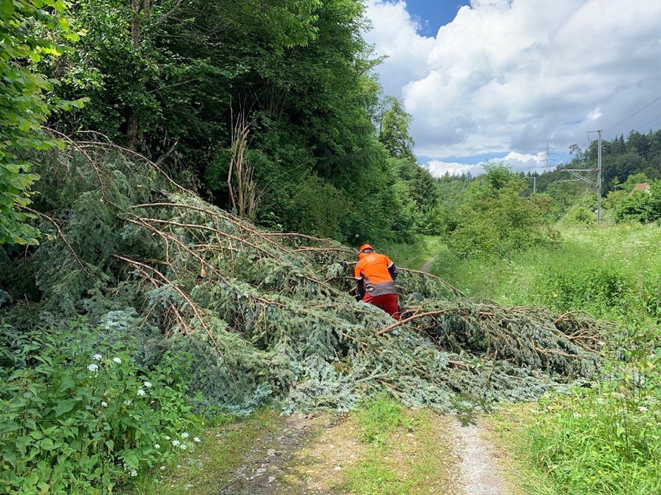 Wegen einem umgestürzten Baum war der Zugang für Revisionsarbeiten der SBB nicht mehr möglich. Deshalb wurden 10. Juni 2024  die Feuerwehr Wetzikon-Seegräben für die Entfernung der Tanne in Seegräben alarmiert. Erstmals kam dabei unsere neu formierte Holzergruppe zum Einsatz.