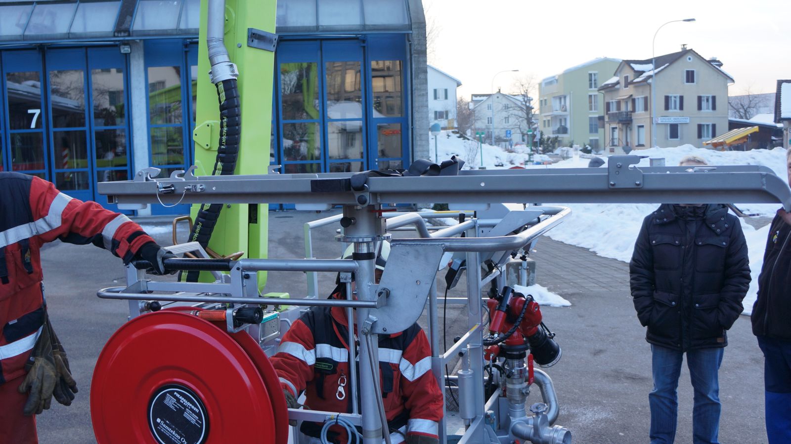Am letzten Freitag wurde das Fahrzeug wieder der Feuerwehr Wetzikon-Seegräben übergeben. Bei einer kurzen Präsentation und Schulung wurden den Einsatzkräften die Änderungen am Fahrzeug gezeigt.