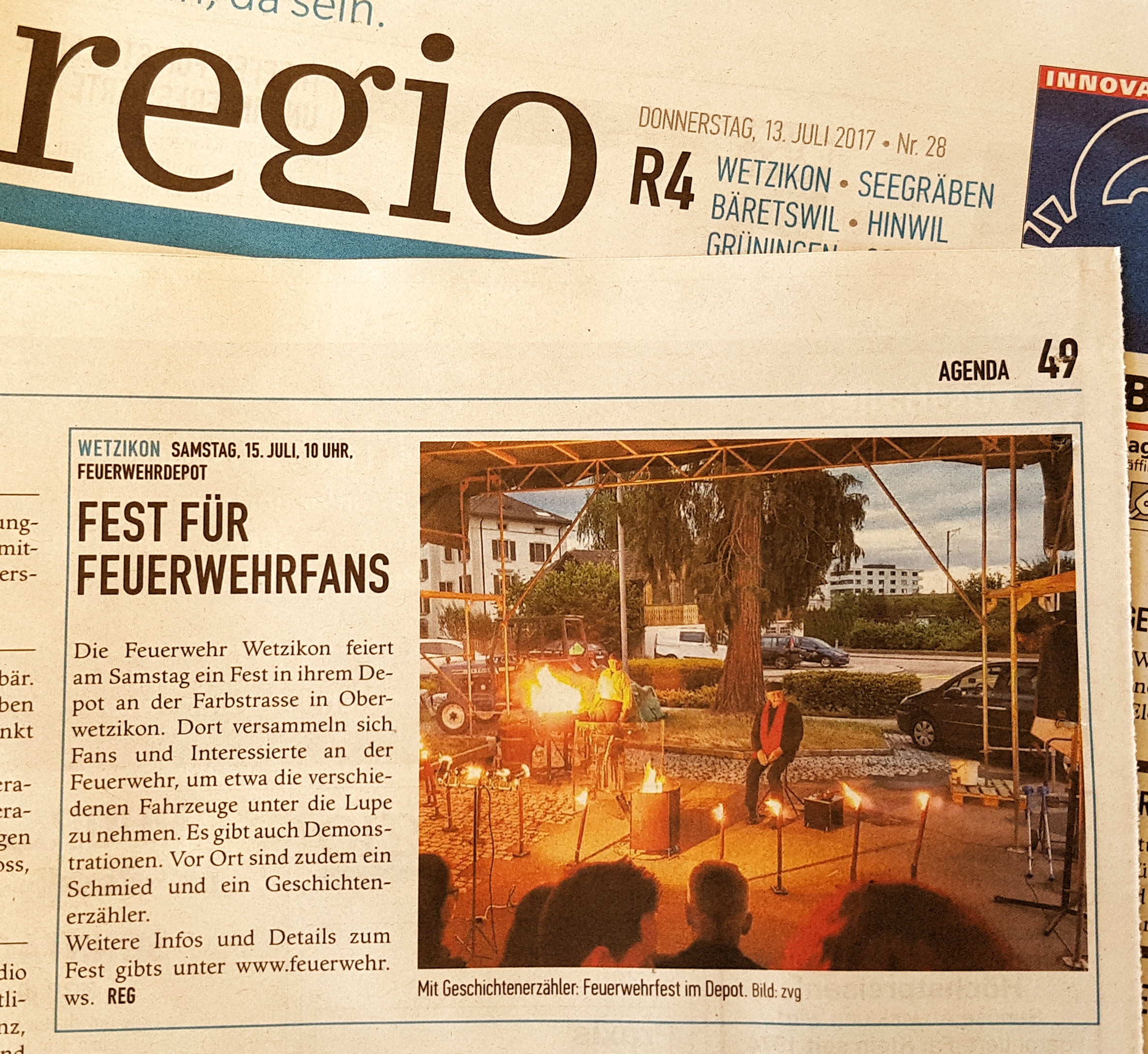 Das in der Agenda vom regio beworbene Fest für Feuerwehrfans findet nicht bei der Feuerwehr Wetzikon-Seegräben an der Farbstrasse statt, sondern es ist ein Fest der Trägerschaft zum Erhalt alter Feuerwehrfahrzeuge und wird beim alten Feuerwehrdepot Kempten durchgeführt.