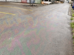 Olspur auf der Kastellstrasse nach einem Defekt an einem Auto.