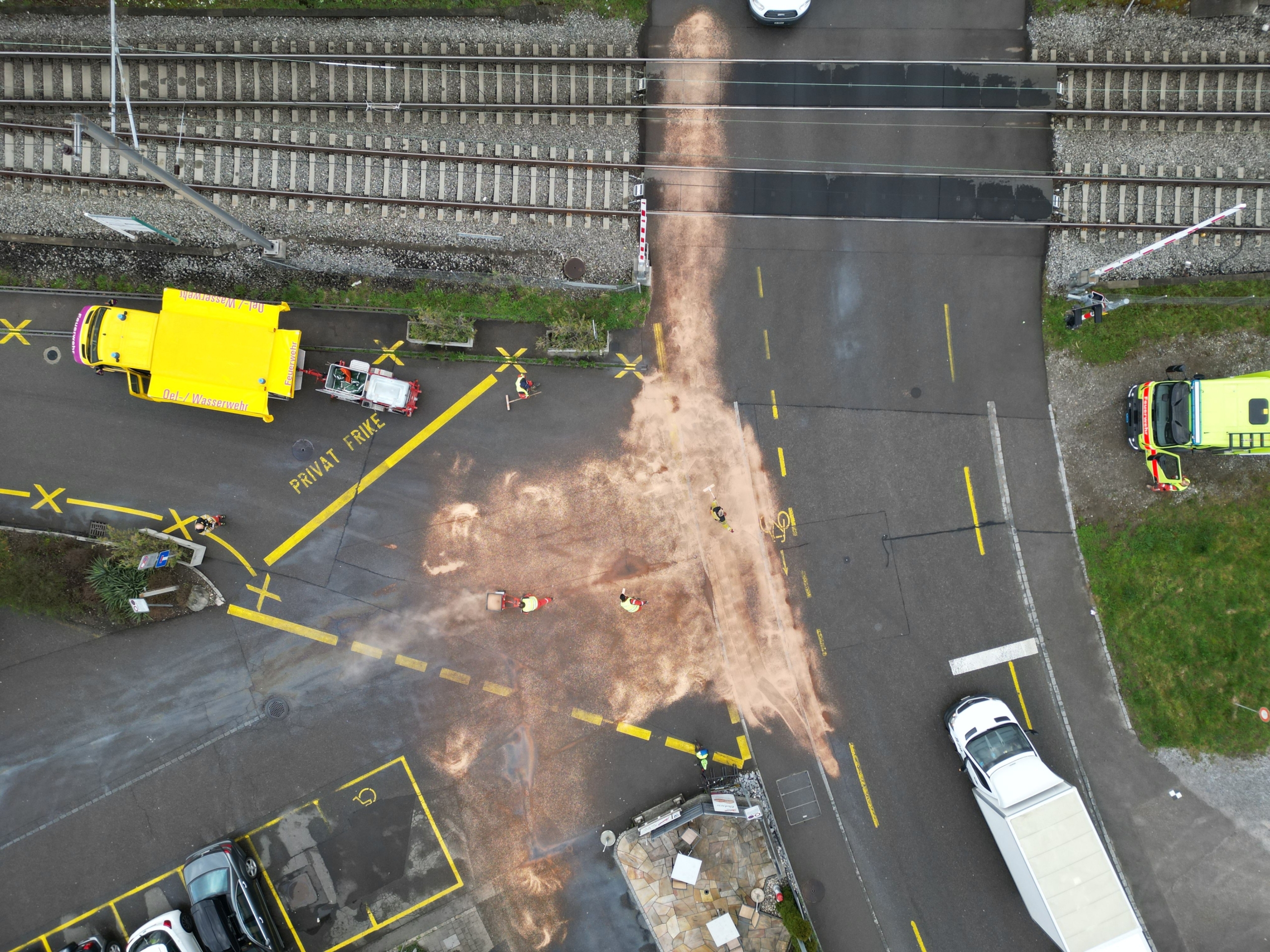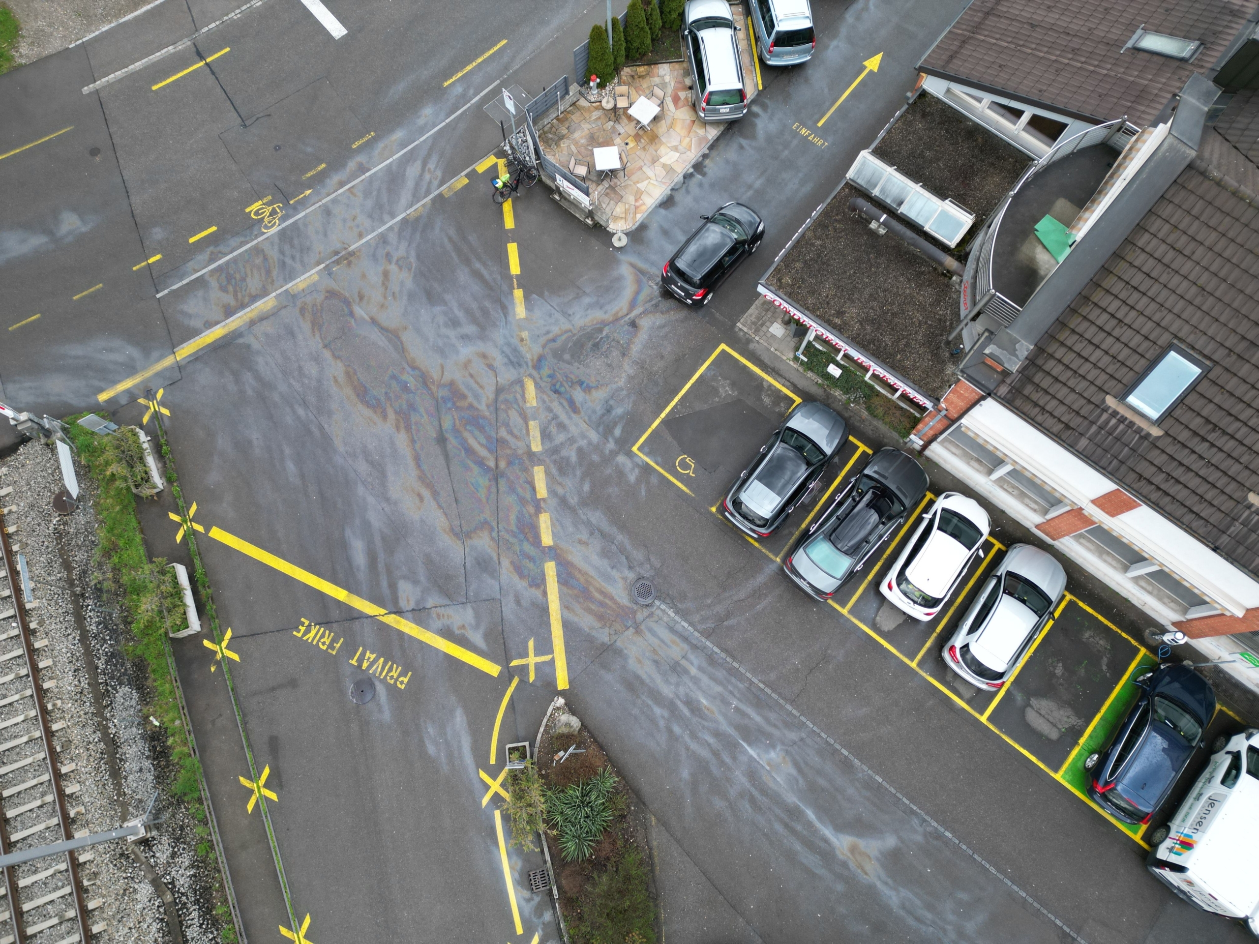Am 31. März 2023 wurde die Feuerwehr Wetzikon-Seegräben wegen einer Ölspur auf der Stations- und Motorenstrasse in Wetzikon alarmiert. Der ausgerückte Einsatzleiter erkundete die gemeldeten Strassenabschnitte und stellte fest, dass eine Intervention durch die Feuerwehr notwendig war, weil Diesel auf der Fahrbahn lag. Daraufhin alarmierte der Einsatzleiter eine Kleinformation, um mit Ölbinder den Diesel zu binden. Bis die Einsatzkräfte vor Ort eintrafen, lies der Einsatzleiter eine Drohne aufsteigen, um ein Bild aus der Luft vom Ausmass der Verunreinigung zu erhalten. Den je nach Blickwinkel und Einfall des Lichts, erkennt man die Verunreinigung nicht. Vor oben erkannte man dank der Drohne das Ausmass der Verunreinigung sehr gut und so konnte man die notwendigen Massnahmen umgehend einleiten. Eine Erkundung zu Fuss oder mit Hilfe eines Fahrzeuges war nicht notwendig. In einem zweiten Schritt wurden die umliegenden Strassen abgeflogen, um eine weitere Verschmutzung ausschliessen zu können.