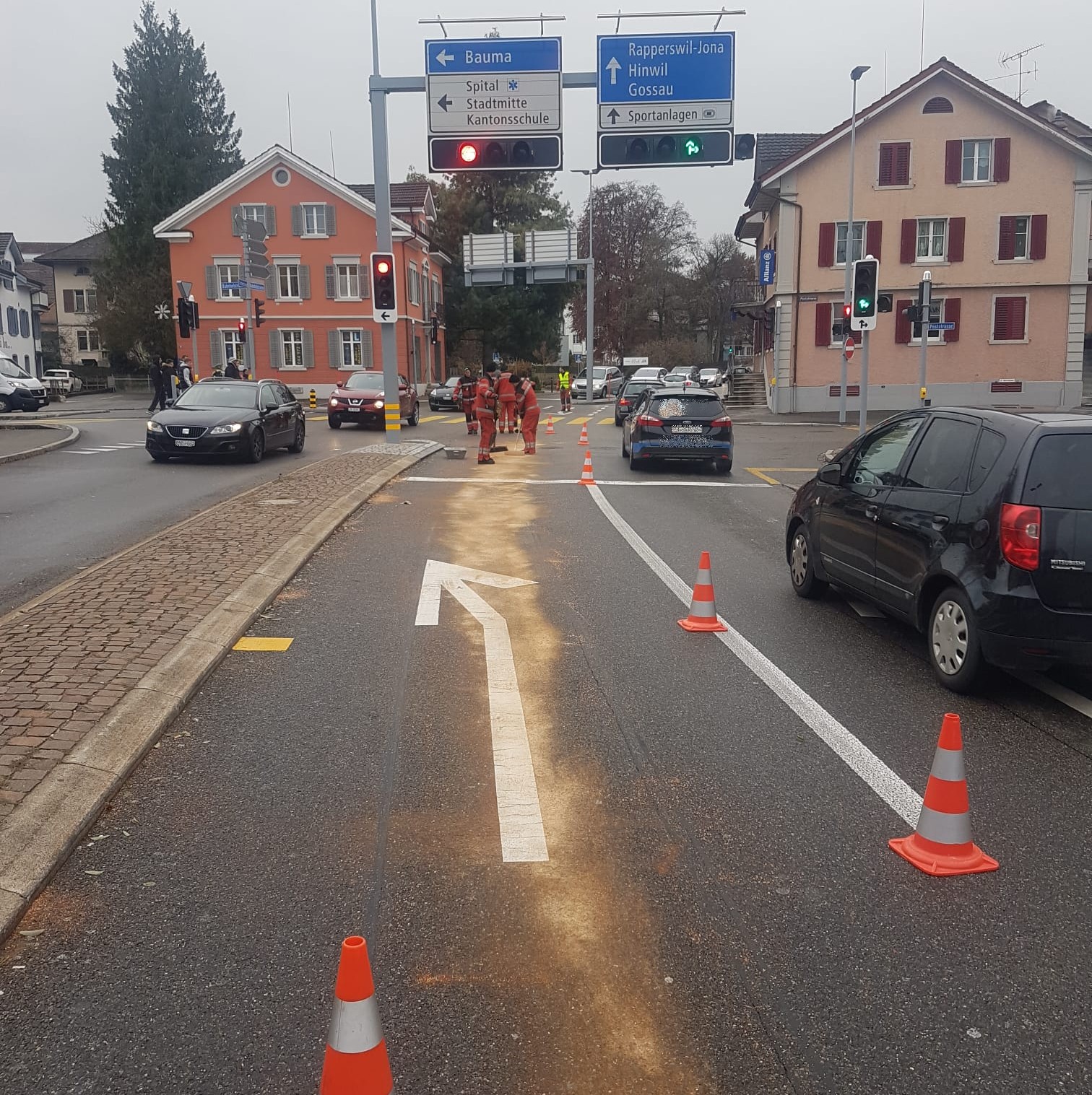 Ölwehr an der Stations-, Bahnhof- und Zürcherstrasse in WetzikonFotos: Feuerwehr Wetzikon-Seegräben