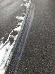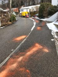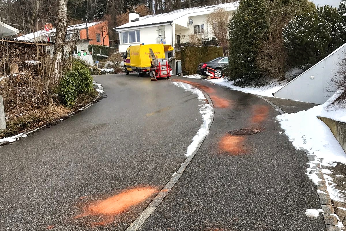 Ölflecken auf verschiedenen Stellen auf der Fahrbahn. Ölbinder gestreut, eingerieben udn wieder aufgenommen.Fotos: Feuerwehr Wetzikon-Seegräben