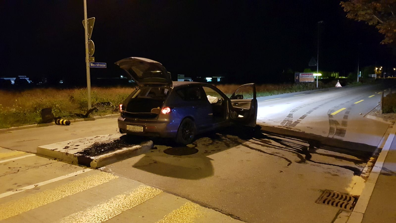 Vor drei Uhr kollidierte ein Personenwagen beim Kreisel West- / Elisabethenstrasse mit einem Inselschutzposten. Dabei wurde die Oelwanne aufgerissen und Motorenöl ergoss sich auf die Fahrbahn. Ein Teil davon gelangte zudem in de Meteowasserschächte.