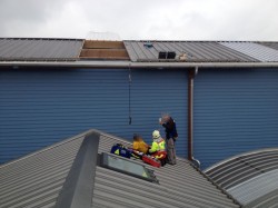 Nach einem Arbeitsunfall musste die Feuerwehr Wetzikon-Seegräben den verunfallten Arbeiter mit dem Hubretter vom Dach retten. Unterstützt wurde die Feuerwehr durch den Rettungsdienst.