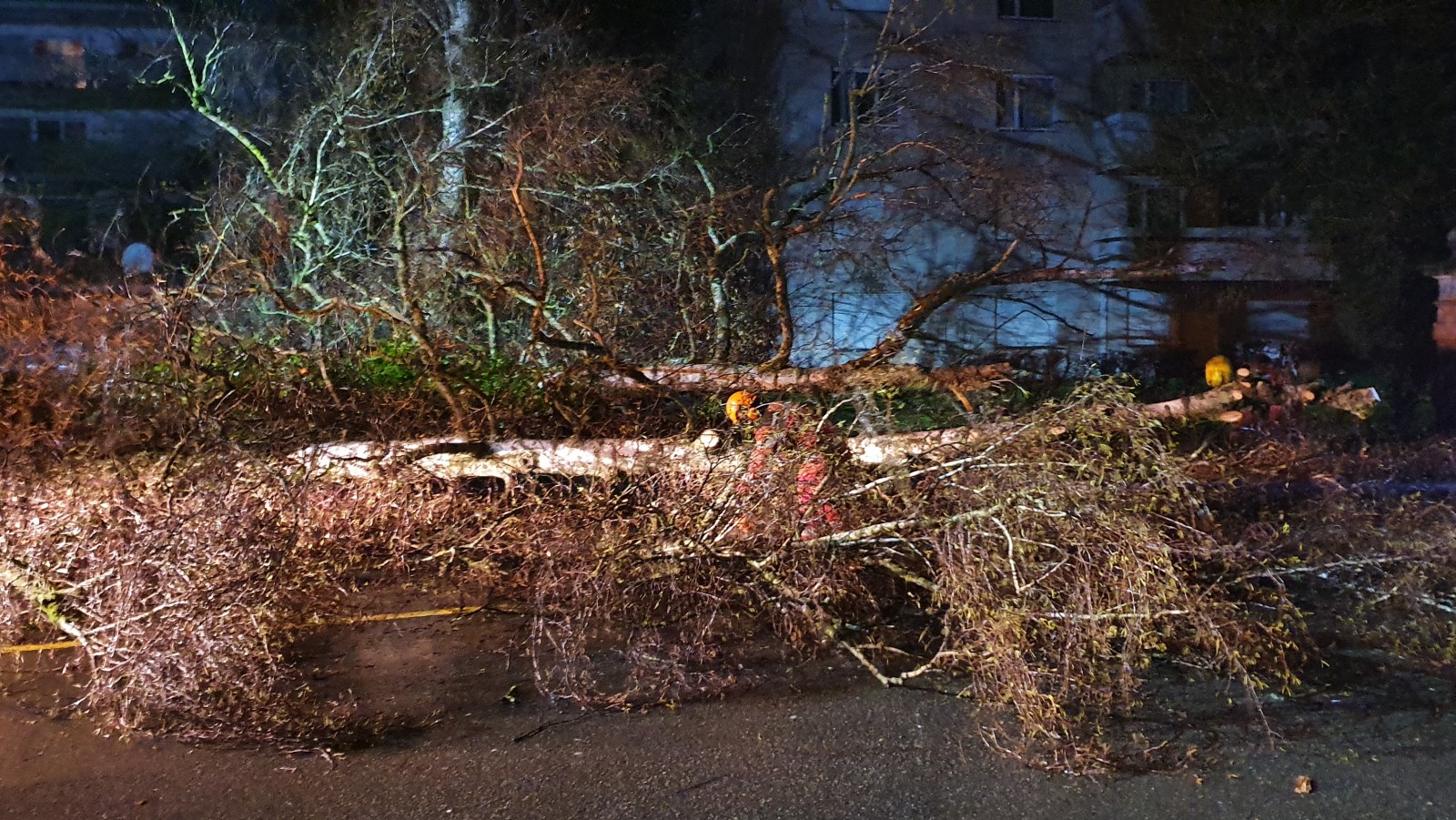 Wie von den Meteorologen angekündigt, verursachte der Sturm Petra am 4. Februar 2020 Schäden und liess Bäume umstürzen.
