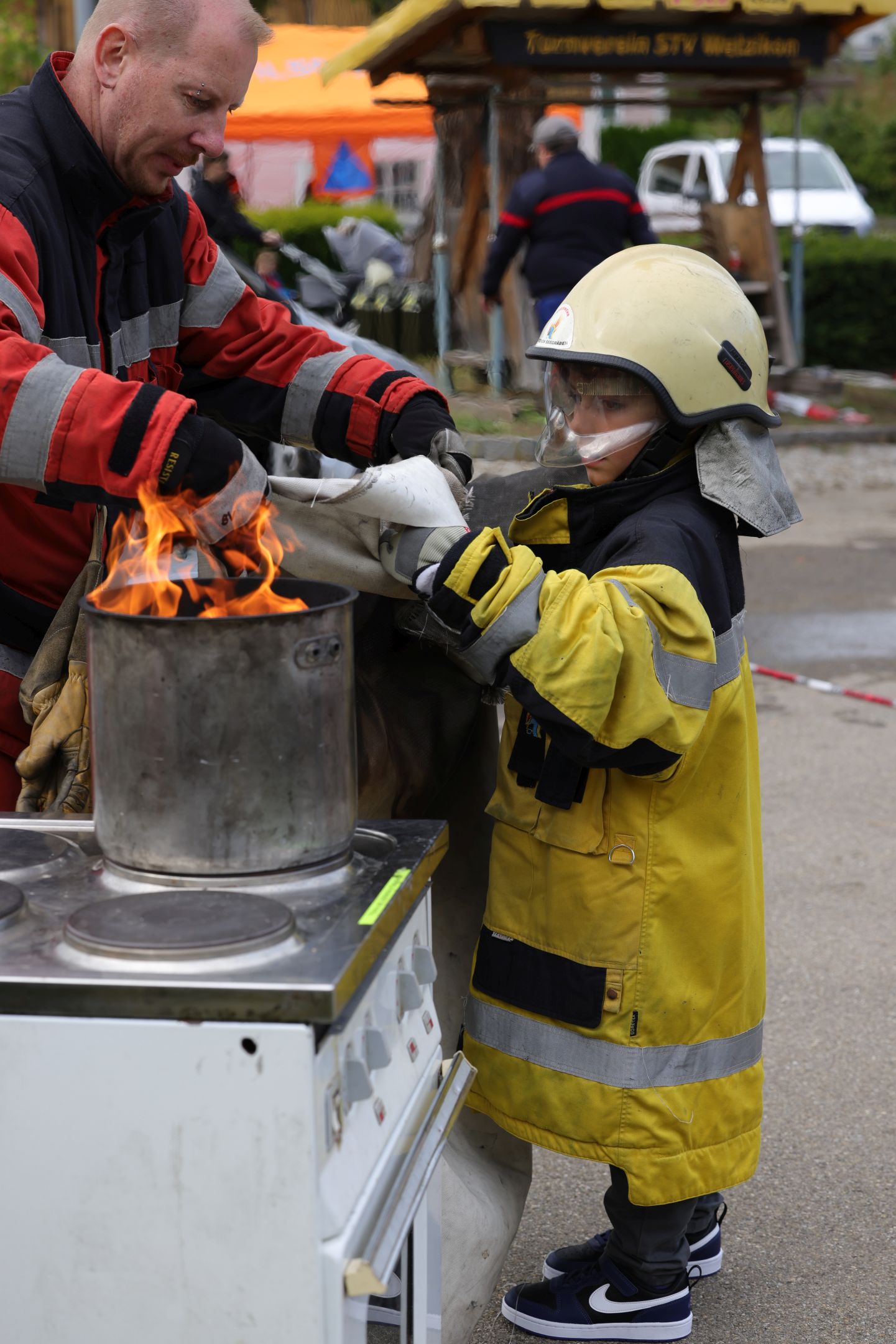 Nach vier Jahren Unterbruch konnte die Feuerwehr Wetzikon-Seegräben endlich wieder einen Einblick in ihr breites Aufgabenfeld geben. So zeigte die Feuerwehr immer wieder mit kleinen Einsätzen ihr Können und brachten so die Besucher ins Staunen. An diversen Posten wurden die Besucher über das breite Aufgabengebiete der Feuerwehr informiert. Auch für die kleinsten Besucher wurde viel geboten und sie konnten sich sogar beim Löschen von einem kleinen Feuer üben.