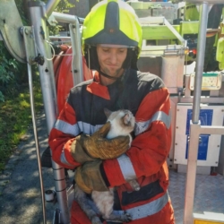 Tierrettung mit dem Hubretter (Katze auf Baum) an der Stationsstrasse in WetzikonFoto: Feuerwehr Wetzikon-Seegräben
