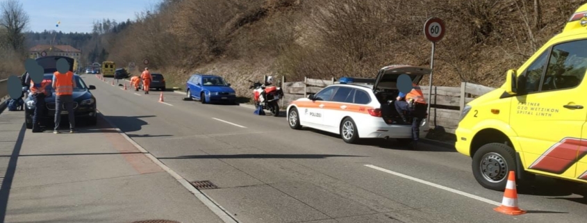 Verkehrsregelung nach Unfall (Umleitungskonzept Aathal) an der Zürichstrasse in SeegräbenFoto: Feuerwehr Wetzikon-Seegräben